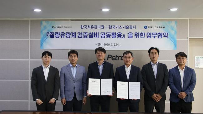 한국석유관리원(이하 `석유관리원`)과 한국가스기술공사(이하` 가스기술공사`)는 7월 9일 석유관리원 본사(경기도 분당구 소재)에서 `질량유량계 검증설비 공동활용을 위한 업무협약`을 체결했다.