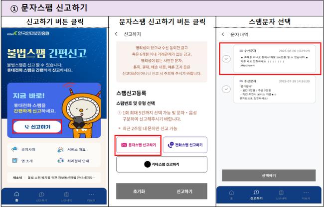 불법스팸 신고는 간편신고 앱 외에도 ▲문자·음성 신고 ▲불법스팸대응센터 누리집(spam.kisa.or.kr) ▲118 상담센터 등 다양한 방법으로 할 수 있다.