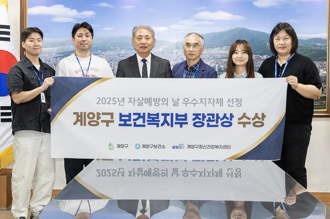 이번 표창은 전국 기초지자체를 대상으로 실시한 자살예방 시행계획 및 추진실적 평가 결과에 따른 것으로, 계양구는 ▲범사회적 자살예방 환경 조성 ▲맞춤형 서비스 제공 ▲정책추진 기반 강화 등에서 높은 평가를 받았다.