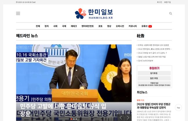 "언론 자유 겨눈 정치행위"... 한미일보, 민주당 고발에 강력 반발 - "구체적 근거 없는 작위적 판단" "비판 언론 제압 시도" - 공당의 고위공무원 보호, 과거 정권과 대비되는 이례적 행보