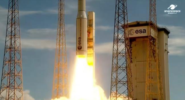 국내 자체 기술로 개발한 초고해상도 관측위성 아리랑 7호가 2일 새벽 2시 21분(한국시간) 남미 프랑스령 기아나 쿠루 기아나우주센터에서 아리안스페이스 베가-C에 탑재돼 발사되고 있다. 아리안스페이스