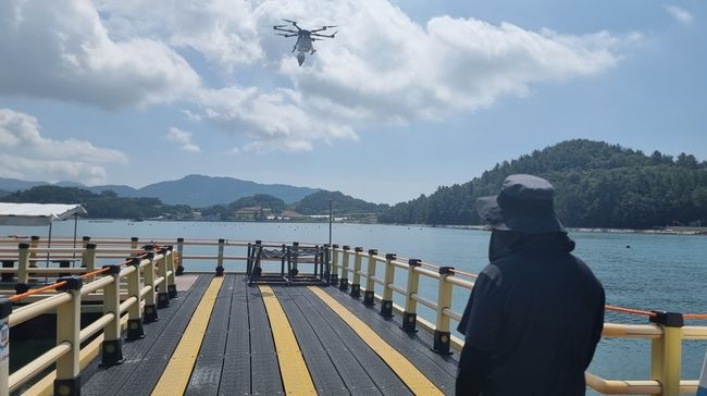 고흥군 거금해양낚시공원 드론배송 장면