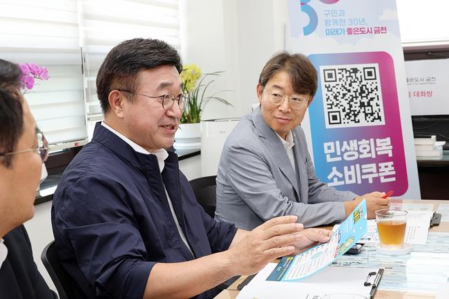 윤호중 행정안전부 장관이 지난 24일 오후 서울 금천구 시흥1동 주민센터를 방문하여 민생회복 소비쿠폰 신청 및 지급현장을 확인 점검하고 있다.