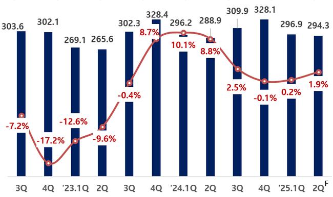 글로벌 스마트폰 시장 규모 및 증감률(%) 자료 : OMDIA, 2025.5