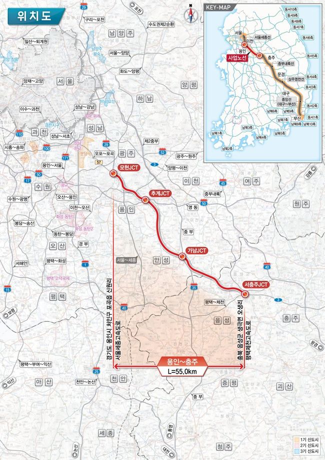 용인-충주 민자고속도로, 민자적격성조사 통과…2030년 착공 전망 - 경기 용인~충북 음성 55㎞ 신설, 총사업비 2조5,617억원 규모 - 용인 반도체 클러스터 교통수요 대응·충청 내륙권 접근성 개선 기대 - 국토부 “전략환경영향평가 등 후속 절차 신속 추진”
