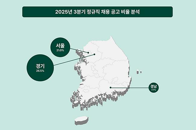 올해 3분기(7~9월) 정규직 채용 공고가 가장 많은 지역은 경기도로 나타났다.
