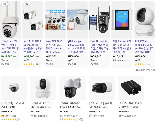 판매 중인 IP카메라 (구글 검색 화면 캡처-기사의 특정내용과 관계없음)